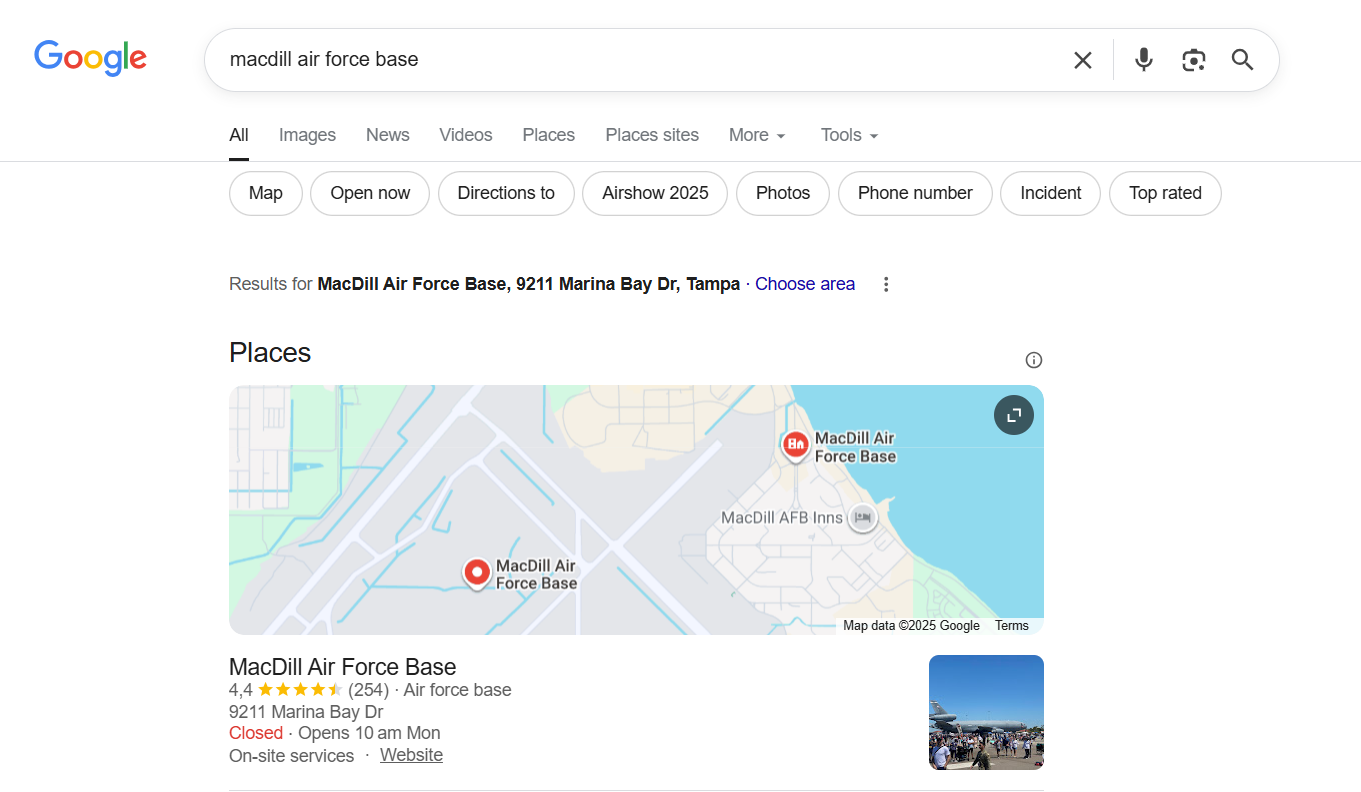 MacDill might be the answer. The plane is definitely headed for some installation on the west coast of Florida. It's still descending.
