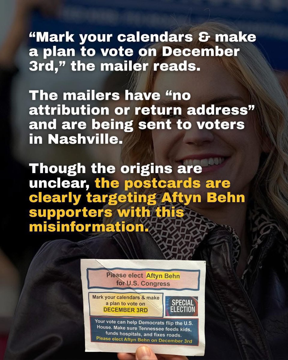 Mailers have gone out ONLY to Dem voters saying the election is this Wednesday the 3rd but its actually this Tuesday Dec 2nd