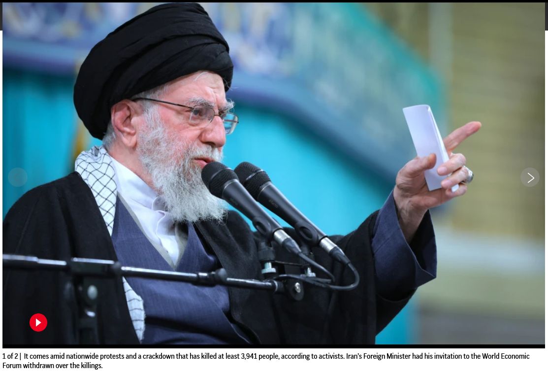 The hacking comes as the death toll in a crackdown by authorities that smothered the demonstrations reached at least 4,029 people, activists said. They fear the number will grow far higher as information leaks out of a country still gripped by the government’s decision to shut down the internet. Iran’s Foreign Minister Abbas Araghchi had his invitation to speak at the World Economic Forum at Davos, Switzerland, withdrawn over the killings.