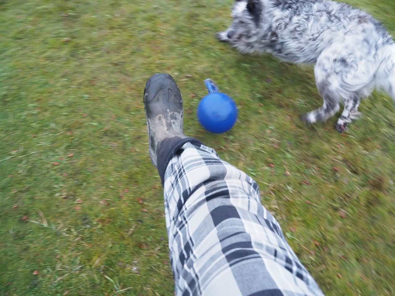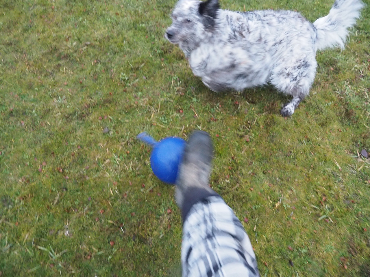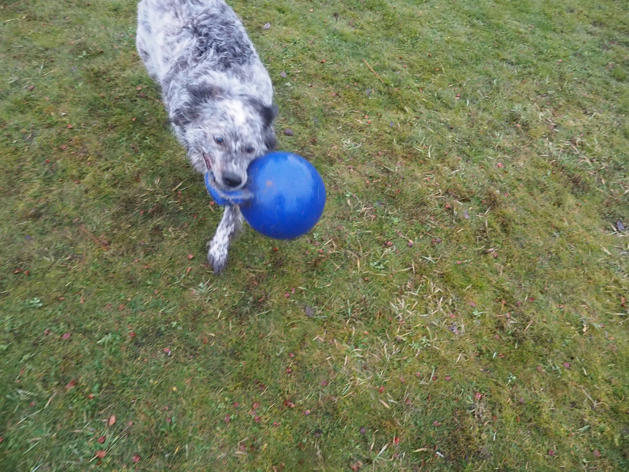 Ever alert Shadow pounced on the ball and brought it back. She Loves Her Jolly Ball.